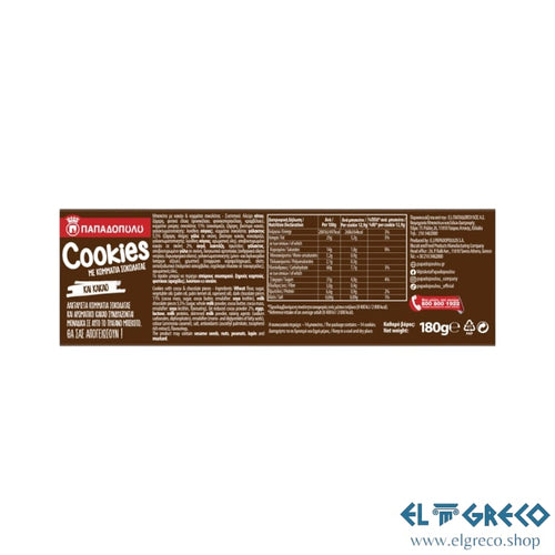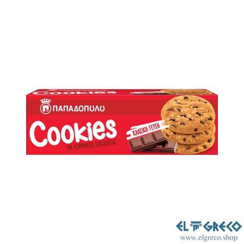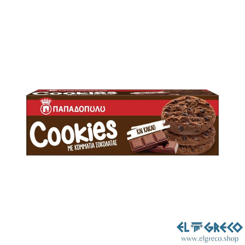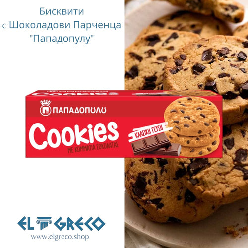 Бисквитите Papadopoulou Cookies с шоколадови парченца са неустоими, меки и пълни с богати шоколадови парченца, които се разтапят в устата. Идеални за всеки момент от деня...