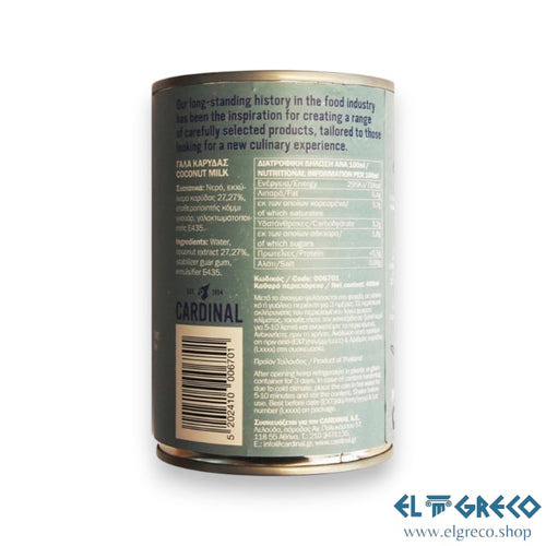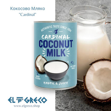 Cardinal Кокосово мляко е растителен продукт на компанията Cardinal, произведен от кокос, който се използва в кулинарията, сладкарството, супи, сосове (особено азиатски), десерти и напитки. Подходящ...