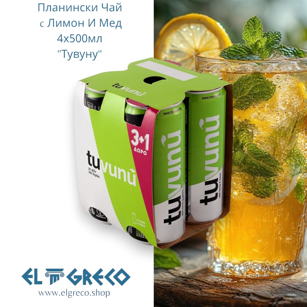 Насладете се на автентичния гръцки студен чай Tuvunu, приготвен от естествен планински чай, комбиниран с мед и натурален лимонов сок. Освежаващa и здравословнa напитка без консерванти и изкуствени аромати, богата на антиоксиданти и с неповторим вкус.