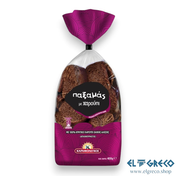 Два пъти изпечен и хрупкав, сухарът с рожков е неповторим. Със 100% критски пълнозърнест рожков, рожков мед и петмез, той предлага несравним, отличителен вкус и висока хранителна стойност. Потопете се и вие в неговите тайни и се осмелете да му се насладите както в солени, така и в сладки варианти.