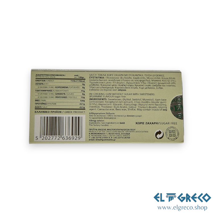 Елма Мента Дъвки без захар съдържат натурална мастика хиос и масло от мастикс, които имат силно анти-микробно действие, като предпазват от появата на зъбна плака и облекчават стомашните смущения.Дъвките съдържат ксилитол, който понижава нивото на киселинност в устата, която може да предизвика разрушаване на