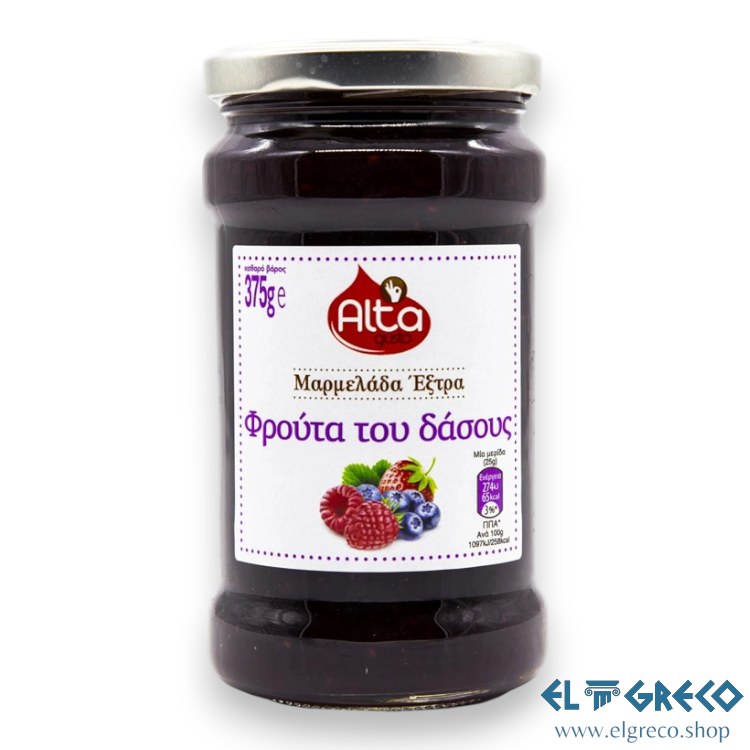 Екстра конфитюр Alta Gusto с горски плодове от най-високо качество, с богат вкус и изключителен аромат. Той е с екстра качество, тъй като 100 г конфитюр съдържат 55 г плодове. Има висока хранителна стойност и не съдържа оцветители или консерванти. Произвежда се в съвременни производствени съоръжения, където постоянният контрол при подбора на плодовете и строгите проверки на качеството на всички етапи от производството гарантират отличното качество на продукта. Открийте и другите прекрасни вкусове.