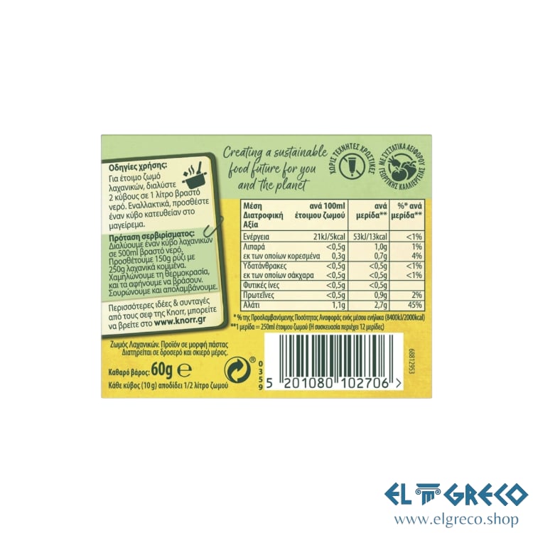 Телешкият бульон Knorr в кубчета придава богат и наситен вкус на месо, който обогатява всяко готвено ястие. Идеален за супи, червени сосове, ризото, паста и месни ястия. Приготвен е от подбрани съставки и осигурява автентичен домашен вкус. Всяка опаковка съдържа 6 кубчета, които осигуряват 3 литра бульон.